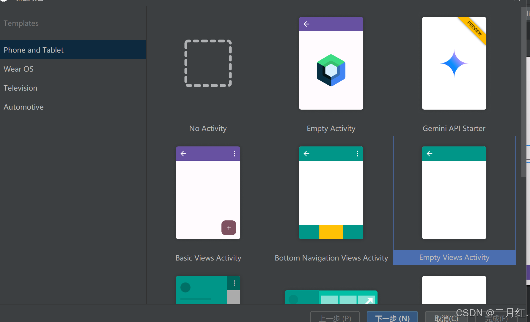 首先:新建页面有俩种方式(第一种),新建项目选择“Empty Views Activity”,另外一种在工程下新建页面(结尾展示)