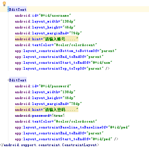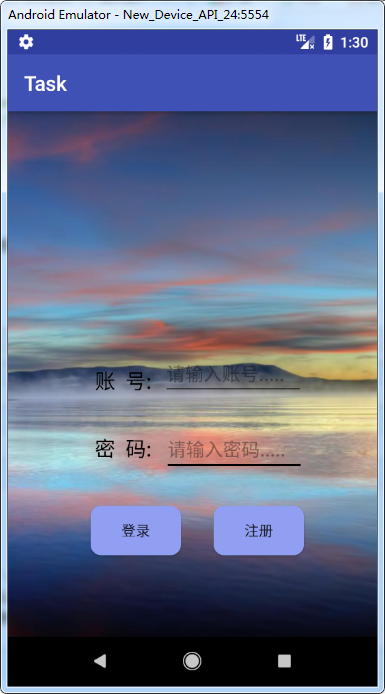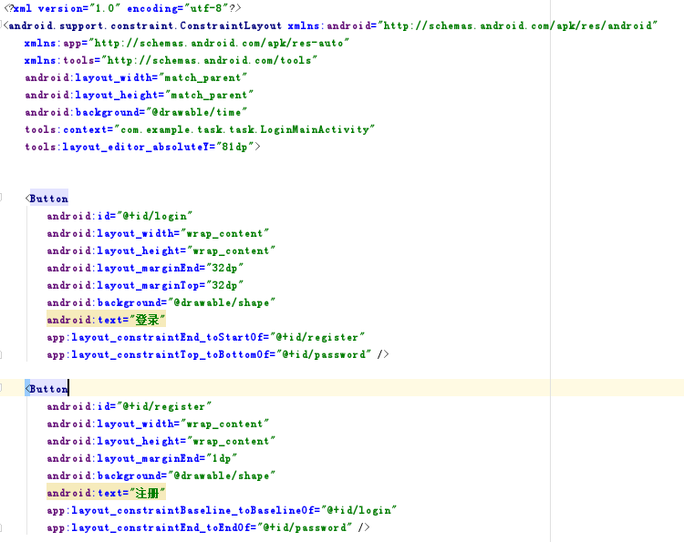 注:写在login_main.xml文件中的android:background="@drawable/time"代码是实现页面的背景效果图,需要自己添加。