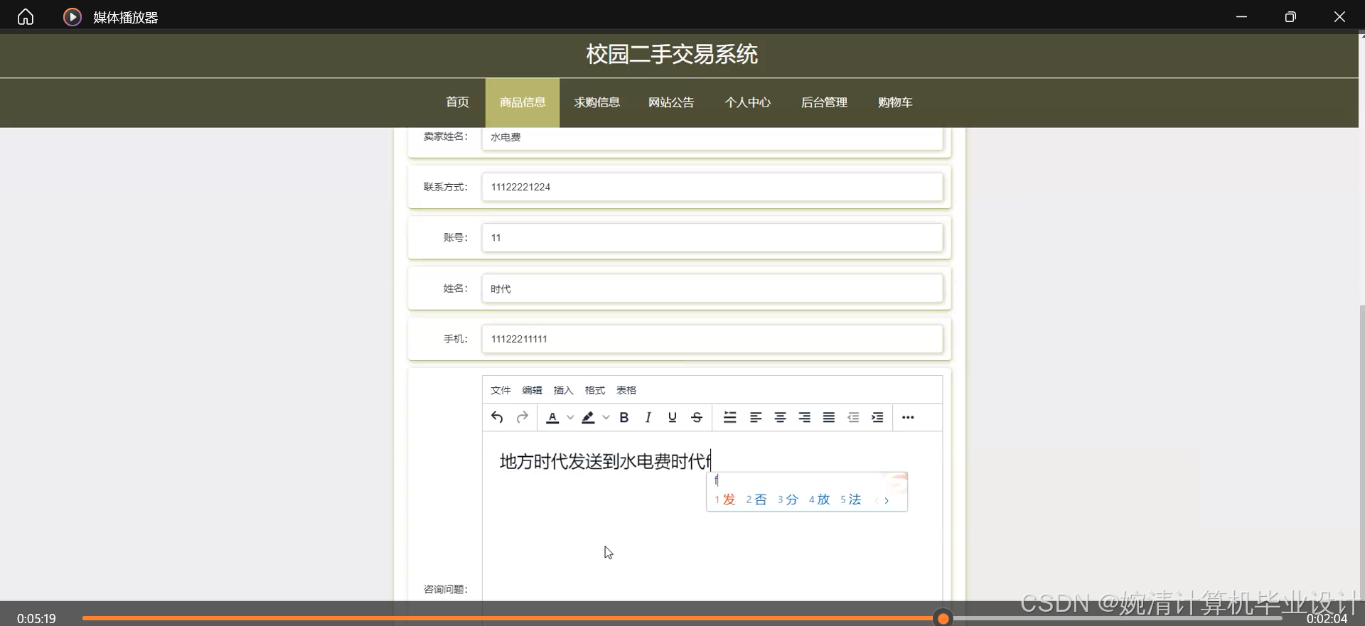 本研究内容主要包括校园二手交易系统的功能设计与实现。具体涵盖用户管理、卖家管理、商品分类管理、商品信息管理、在线留言管理、求购信息管理等功能模块。在用户管理模块中,实现用户的注册、登录、个人信息管理等功能;在卖家管理模块中,实现卖家的身份认证、店铺管理等功能;在商品分类管理模块中,实现商品的细致分类与检索;在商品信息管理模块中,实现商品的发布、展示、交易及评价等功能;在线留言管理模块中,实现用户之间的在线交流与沟通;在求购信息管理模块中,实现用户发布求购信息、系统匹配相应商品等功能。通过这些功能模块的设计与实现,构建一个功能完善、操作便捷、安全可靠的校园二手交易系统。
